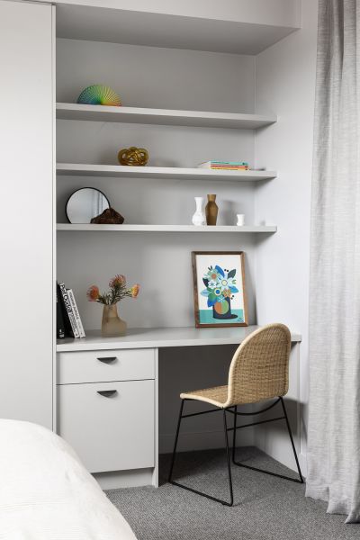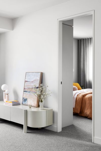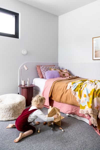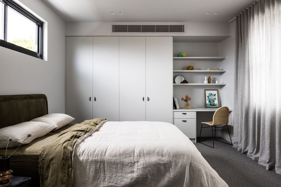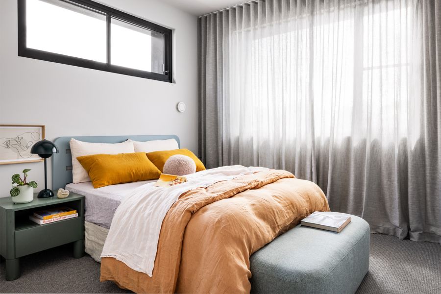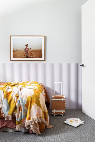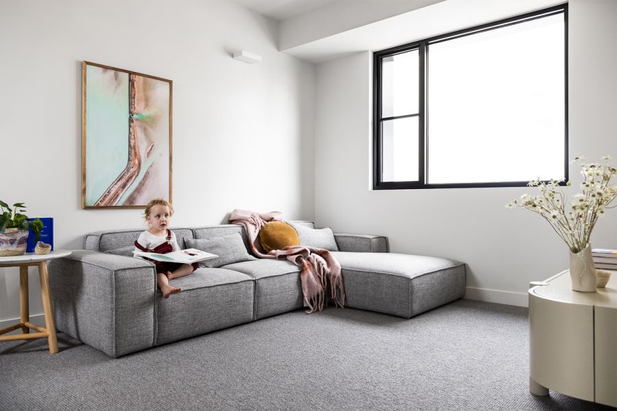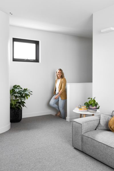 Hycraft Petra in colour Fortress was installed in all four bedrooms and second level retreat, its rich mid-grey a neutral foil for white walls with feature pops of colour. Pure, biodegradable and renewable, wool is also naturally insulating, noise dampening and stain resistant, with a cosy underfoot softness that’s perfect for lounging on.