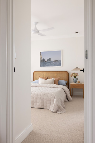 “We selected the Caribbean wool carpet for its warm sandy tone and its soft, inviting feel, complementing our light timber flooring. We loved that the Corsica range in Coastal Oak was a light timber colour and that it could be laid in both a traditional and arrow pattern, adding a refined touch of luxury to the home.” – Heather and Sarah