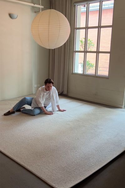 Loui’s content emphasises the importance of rugs, particularly those with natural fibres and textures like jute, and their warming impact on the design and feel of a space. We were so excited at the idea of transforming our wool carpet into custom rugs for his home, with its insulating properties keeping apartments like Loui’s cool in summer and warm in winter.