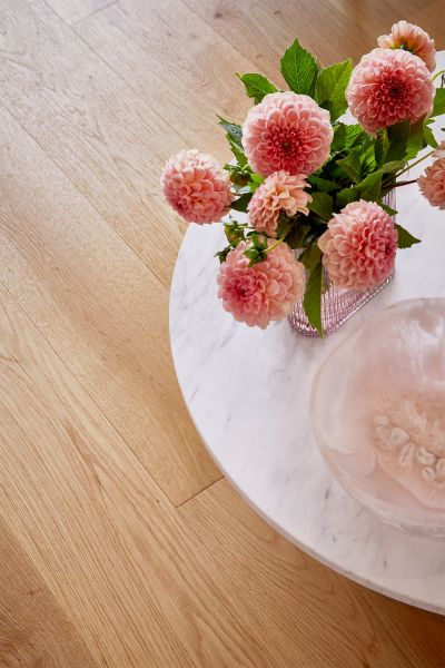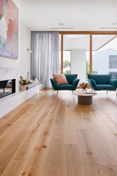 Drawing the eye and creating a sense of space, Corsica Oak timber flooring adds contrast and texture to this space, bring the look together. The Natural Oak colour, this technologically advanced laminate features a brushed finish and offers fade, stain and wear resistance. Easy to install with the look and feel of timber, Corsica Oak is the perfect flooring solution for busy households.