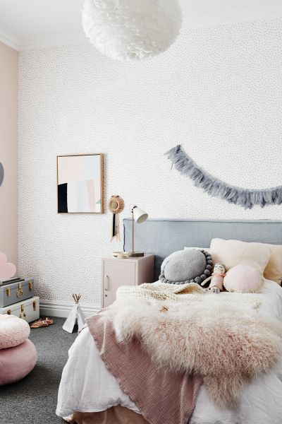 Hycraft Carramar in Evening Grey, a level loop chunky textured wool carpet, described by Nat as 'like little balls of wool', met the brief for comfort, durability, stain resistance and aesthetic appeal. The lightly flecked surface of Carramar off-set the dreamy pastel colours, delicately layered textures and natural materials used to achieve this light-touch design, in a look that resonates in many homes.