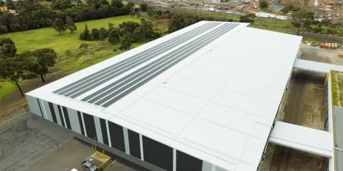 Plant 5, our north Geelong carpet tufting facility, is now the proud owner of a 500kW solar system. Covering 12,000m2 of the facility’s roof, the 1,088 460W panels generate up to 1.97MWh of clean energy per day, offsetting over 60% of daytime electricity.