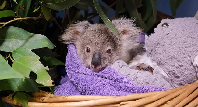 Maisy the koala joey came to the Wildlife Hospital after losing her mum to disease. She is now receiving lots of love and care from her dedicated wildlife carer. Once Maisy has grown and is old enough, she’ll begin life in her natural habitat.