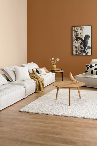 Taupe, beige, caramel and toffee tones all work harmoniously together, creating a relaxed and comfortable space. Astoria in Summer Grace is a warm and durable laminate that provides tonal balance alongside the soft wheat Nood sofa and pebble rug to create depth. If you’re looking for a warm neutral, you can’t look past Resene Half Drought - it‘s a soft, creamy taupe which has been blended effortlessly with a hint of rose. Pair with the rich Resene Brown Sugar and layer plush cushions, thick throws and eclectic décor for the ultimate cosy nook.