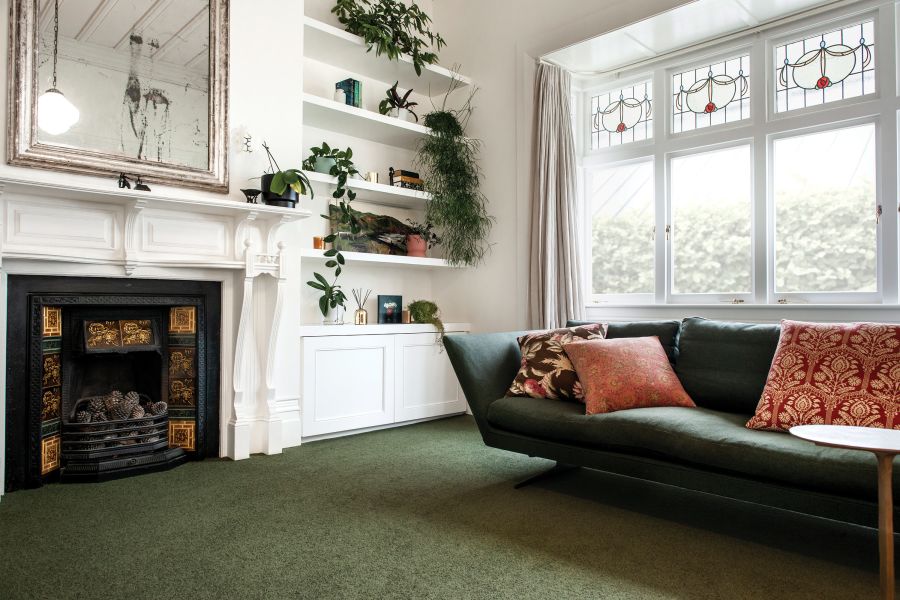 This classic Victorian villa is a wonderful combination of contemporary furnishings with traditional styles. This living room shows how to pull off the mix in a considered, cohesive way. The green carpets can be a very bold choice, but it looks fantastic when paired with the right interior design and home decor. The dark green hues of Mallard add real style to this stunning property. Mallard was inspired by New Zealand’s lush vegetation and Resene Scrub was a great starting point. Mallard is a very usable and versatile green, providing a feeling of nurturing as well as being a comforting and cocooning colour. This olive green provides an alternative to conventional neutrals and will work well with native timber flooring and both light and dark coloured walls.