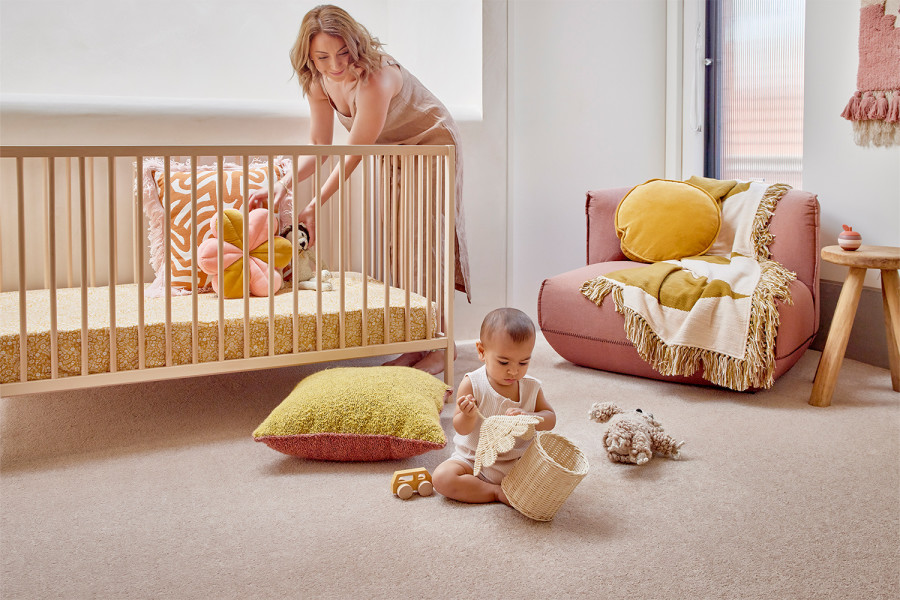 Made from solution dyed nylon, it’s built to last with permanent stain resistance — perfect for busy family life. And with a super plush 70 oz weight, it creates a cosy, comfortable space for little ones to crawl, play and rest. A thoughtful choice for everyday moments and quiet time alike.