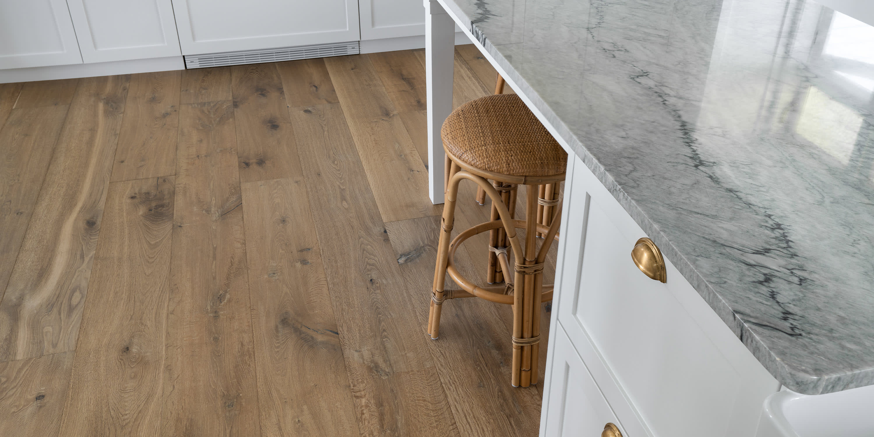 Regal Oak is handcrafted and carefully honed to accentuate the wood’s natural textured surface giving it the depth and dimension of a time-loved floor. This collection is characterised by the beautiful, big knots which create unique character and ambience. The stunning colours are smoked rather than stained to provide consistent colour all the way through the hardwood timber surface.