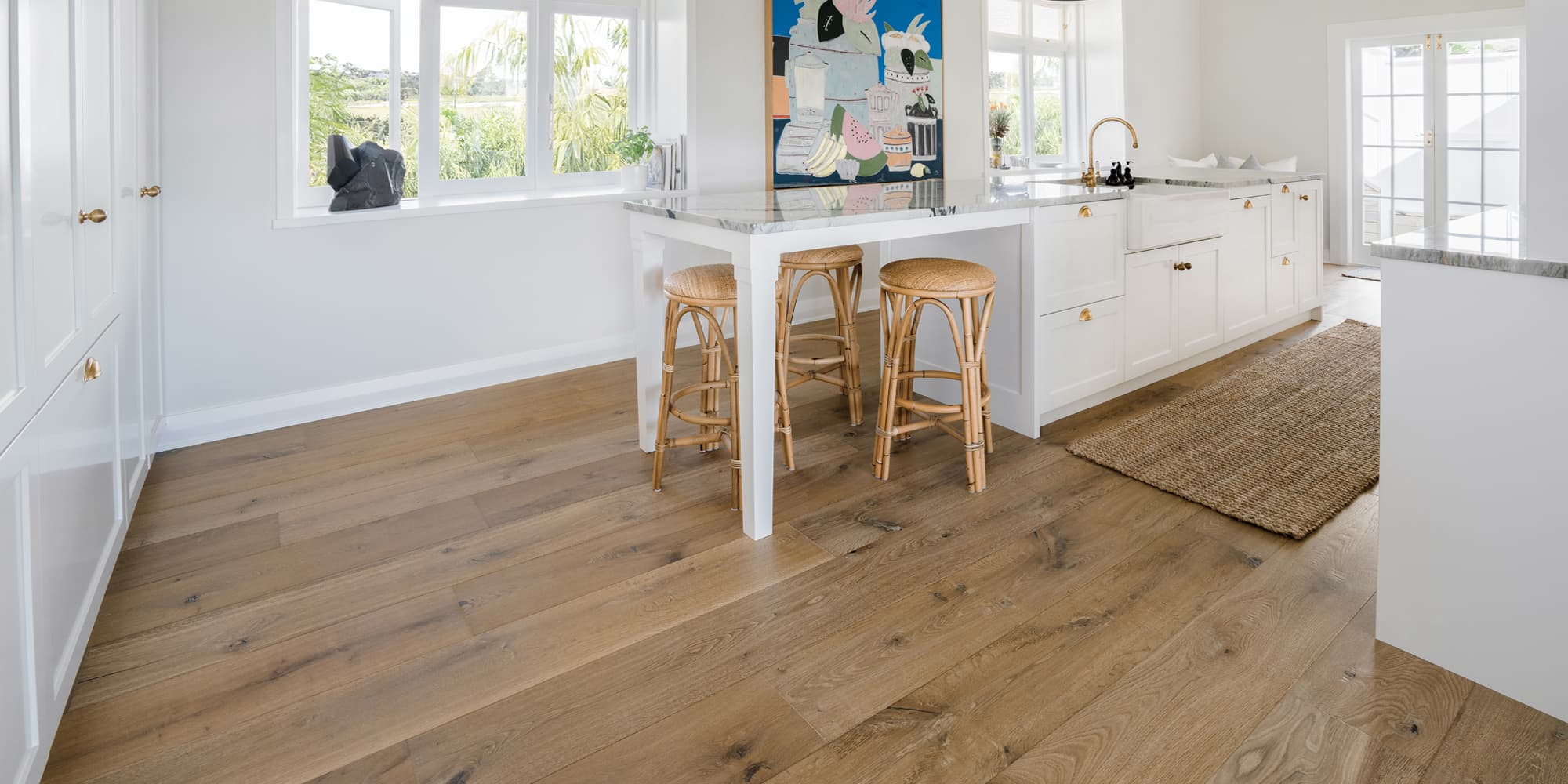 Regal Oak Wide is handcrafted and carefully honed to accentuate the wood’s natural textured surface giving it the depth and dimension of a time-loved floor. This collection is characterised by the beautiful, big knots which create unique character and ambience. The stunning colours are smoked rather than stained to provide consistent colour all the way through the hardwood timber surface.